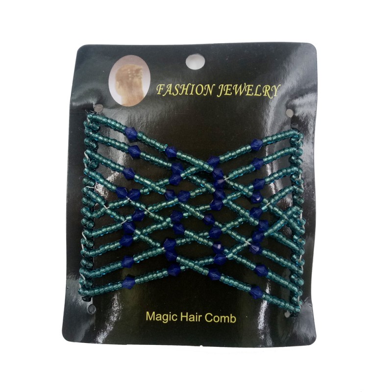 Pettine Magico con Perline in Vetro 90x80 mm, Azzurro/Blu - 1 pz