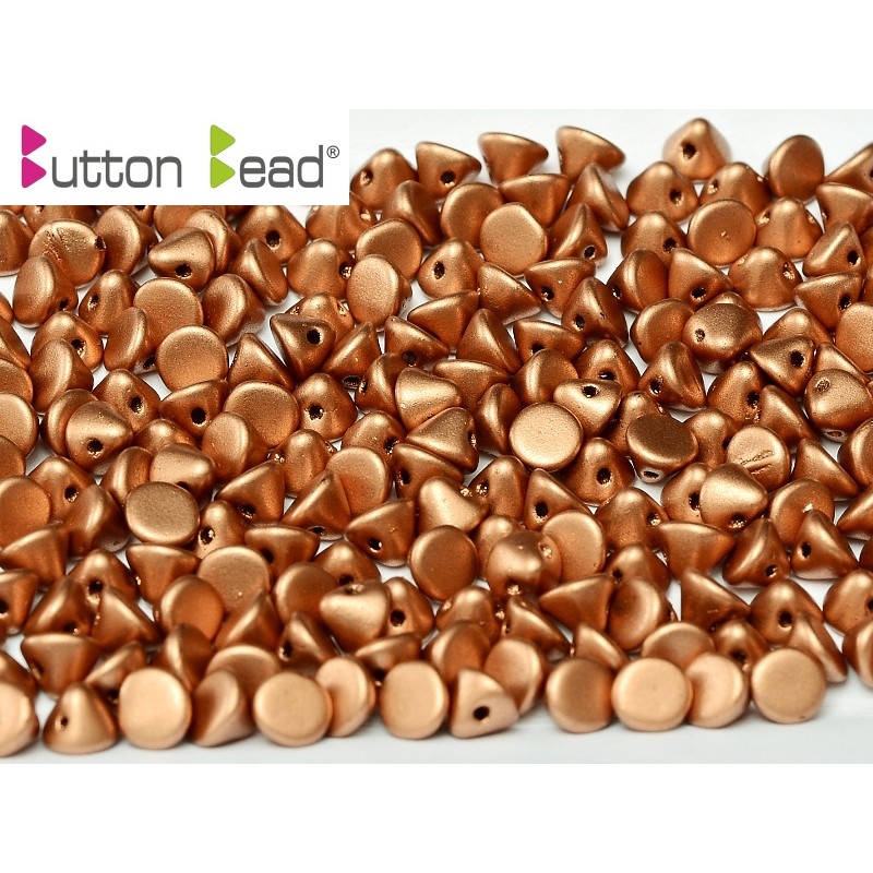 Button Bead è una nuova esclusiva perlina ideata da Sabine Lippert e prodotta in Repubblica Ceca. Ha una superficie piana ed una punta acuminata e può facilmente essere utilizzata in molti schemi e design in abbinamento con rocailles ed altre perline.
