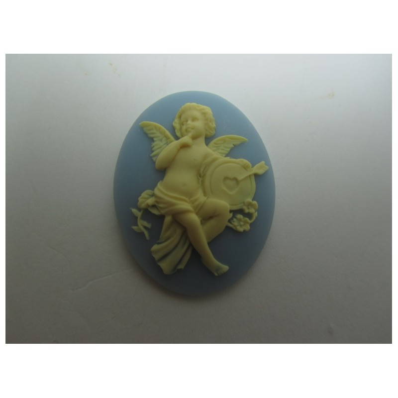 Cammeo Resina Ovale 40x30 mm Putto con freccia Ivory/Light Sapphire - 1 pz