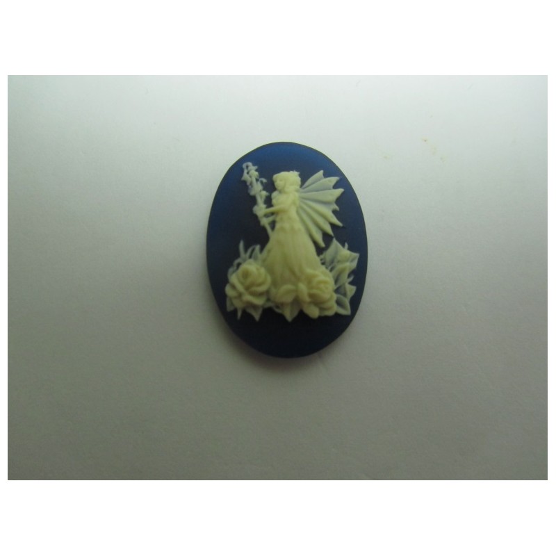 Cammeo Resina Ovale 25x18 mm Fata con rose Ivory/Dark Blue 1 pz