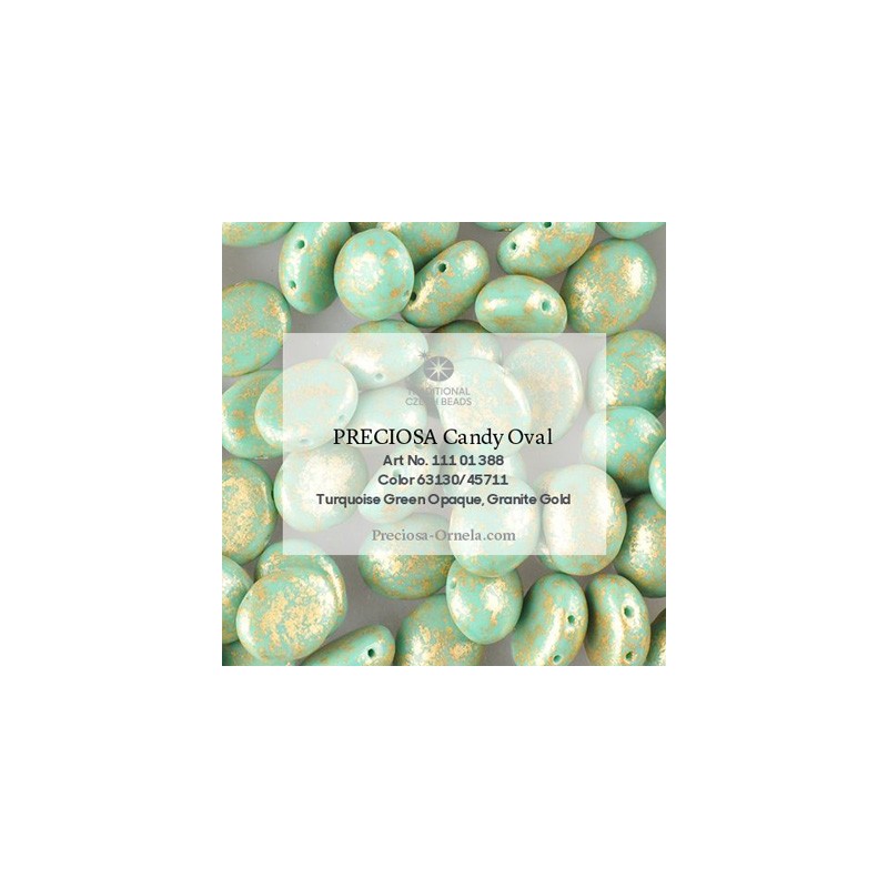 Candy Oval Beads 12x10 mm Opaque Turquoise Green Granite Gold