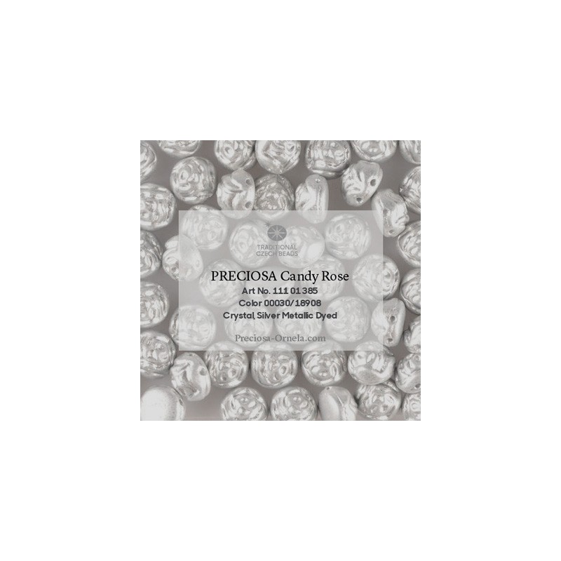 Candy Rose Beads 8 mm Silver Metallic Dyed - 10 pz