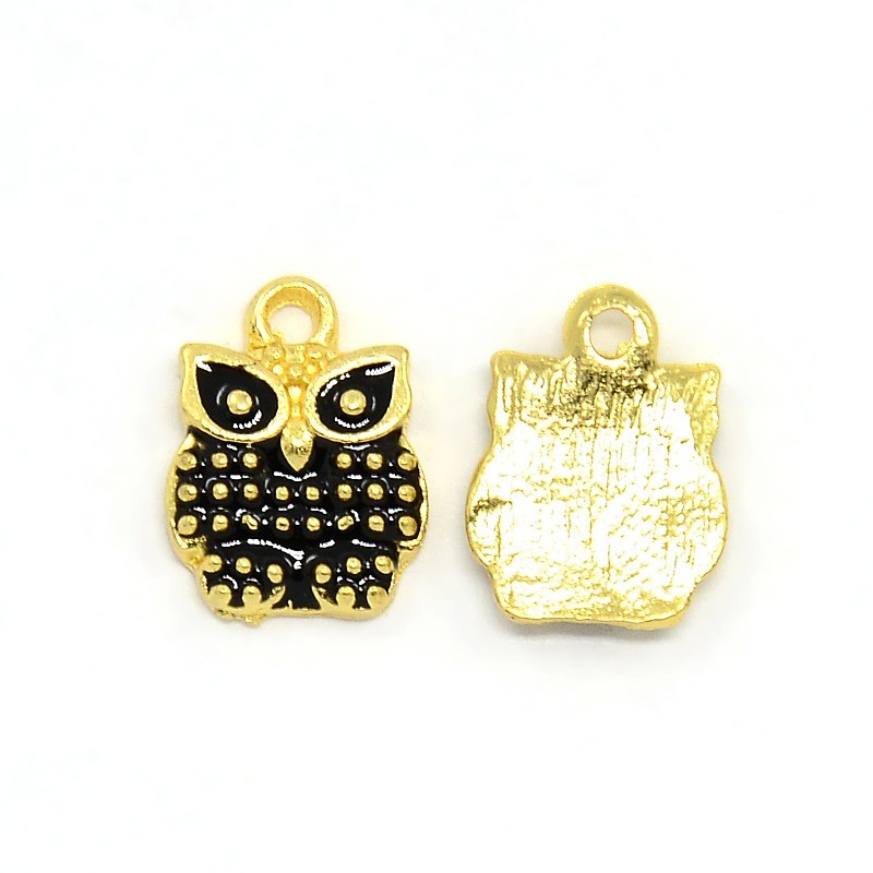 Charm Smaltato Gufo 12 x 10 x 2 mm Nero /Oro - 2 pz