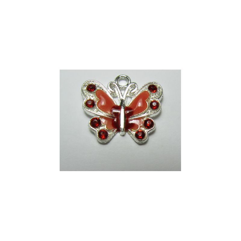 Pendente Smaltato Farfalla con Strass 22 x 21 mm Rosso - 1 pz