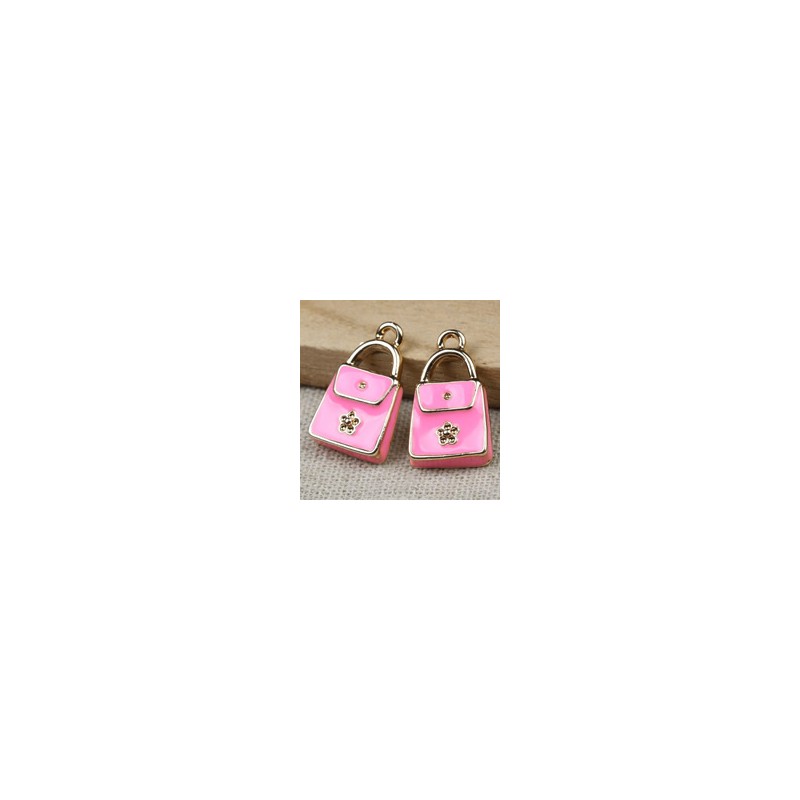 Pendente Smaltato Borsetta Rettangolare 21 x 12 x 3 mm Rosa/Argentato-Dorato - 1 pz