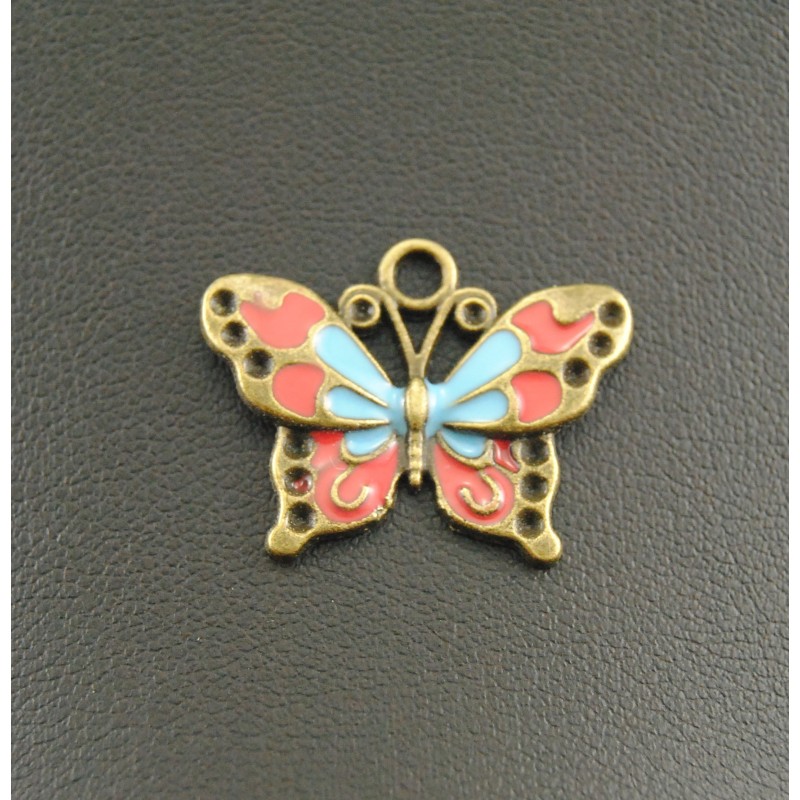 Pendente Smaltato Farfalla 25 x 19 mm Blu/Rosso/Bronzo - 1 pz