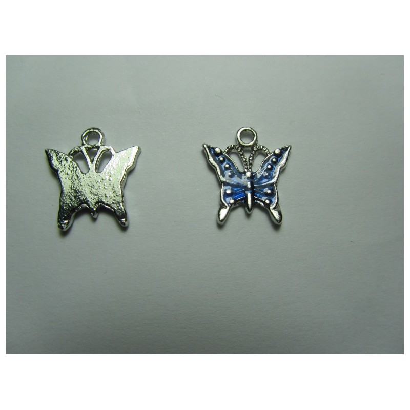 Pendente Smaltato Farfalla 17 x 15,2 mm Blu/Argentato - 1 pz