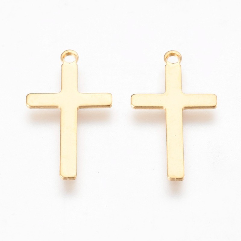 Pendente /Charm Croce Acciaio 23x12,5x0,7 mm Color Oro - 10 pz