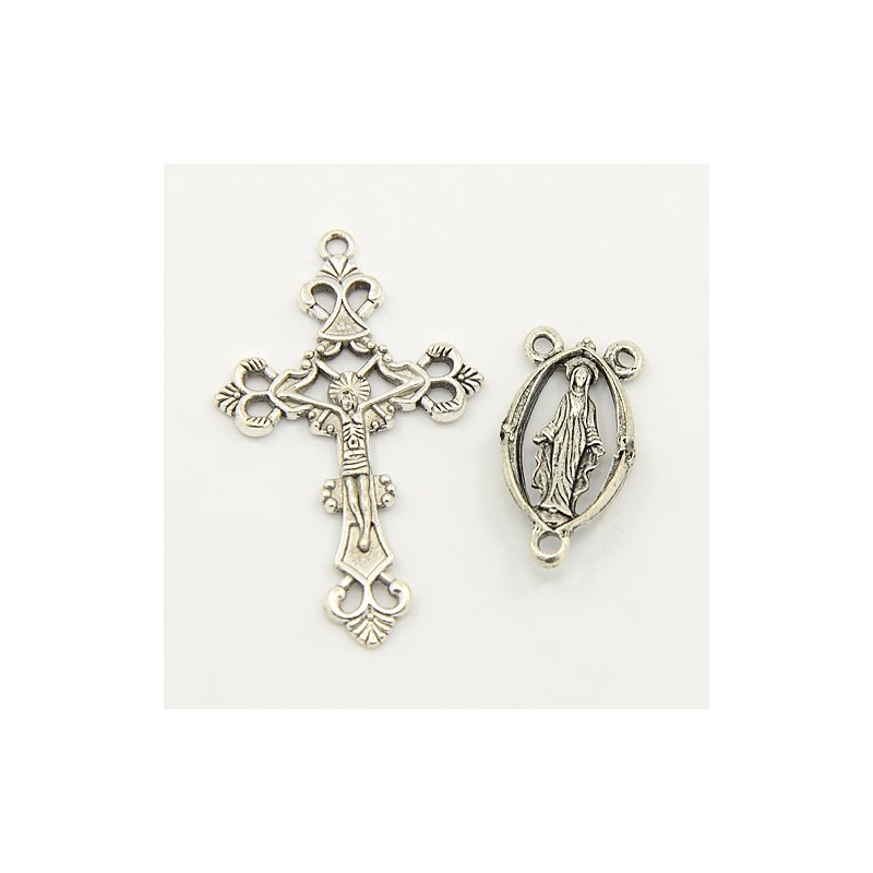 Set Rosario composto da Pendente Cocifisso + Connettore Vergine Color Argento Anticato - 1 set (2 pz)