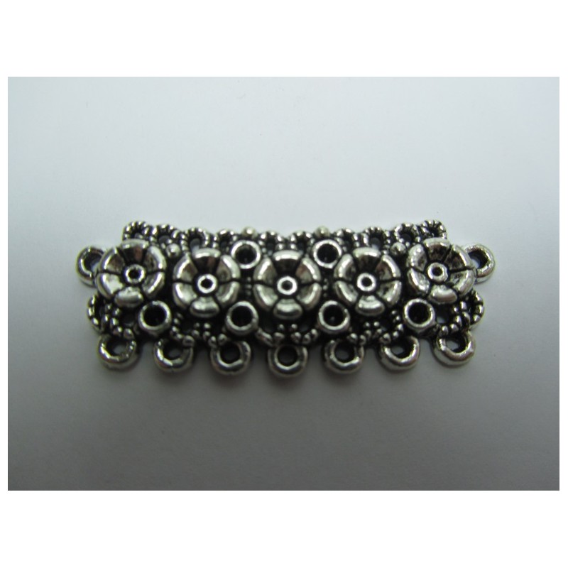 Connettore Curvo con Fiori 38x15 mm Color Argento Anticato - 1 pz