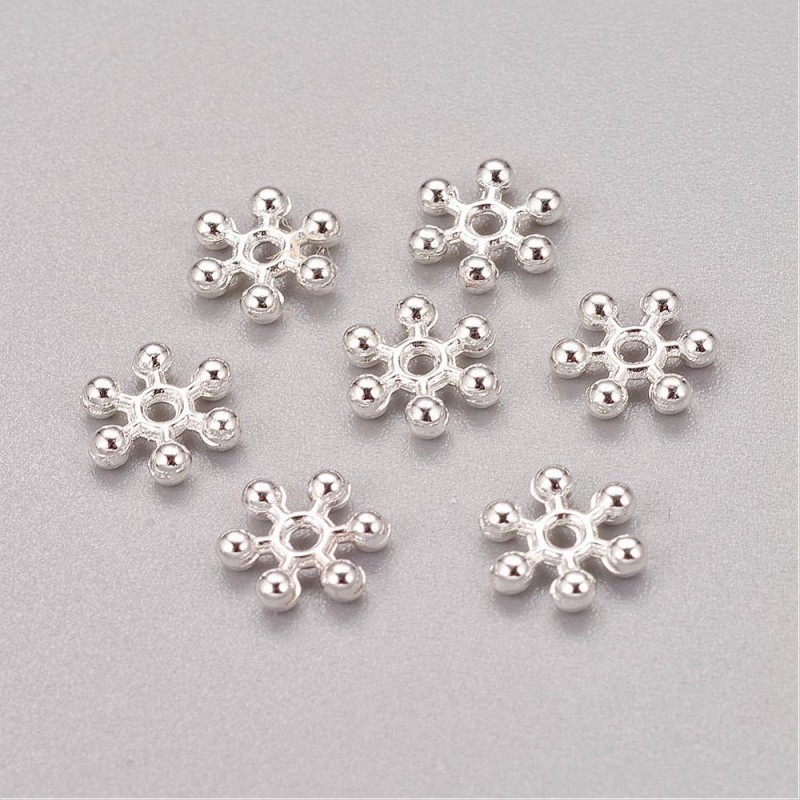 Distanziatore in metallo 8,5x2,5 mm Forma Fiocco di Neve, Color Argento - 10 pz