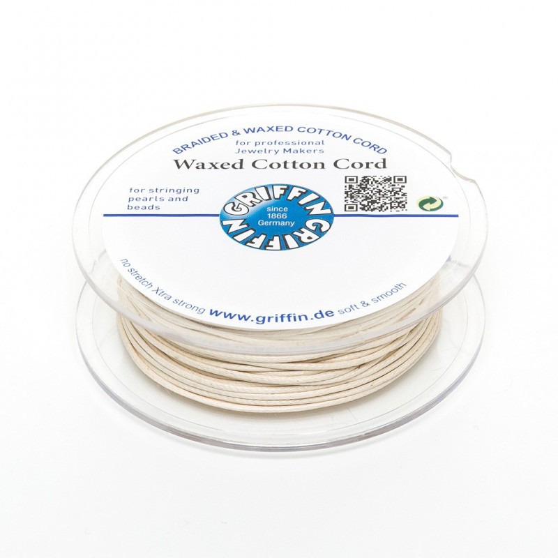 Il cordoncino in cotone cerato Griffin è molto versatile, facile e veloce da usare, molto resistente e disponibile in una vasta gamma di colori. La ceratura dona un aspetto liscio che valorizza i colori vivaci e li rende ancor più belli. Le versioni con diametri piccoli sono ideali per Kumihimo. Tutte le dimensioni sono adatte per essere attorcigliate molte volte come per bracciali Shamballa.