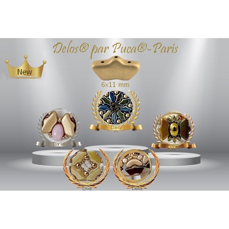 Nuovissime fantastiche Delos® par Puca®! Si tratta di perline prodotte in Repubblica Ceca con vetro pressato di alta qualità, con forma di corona 6x11 mm e 3 fori. Perfettamente compatibili con tutte le altre perline par Puca®, sono disponibili in una vastissima gamma di colori e permettono la realizzazione di molteplici nuove combinazioni e designs. Assolutamente da provare!