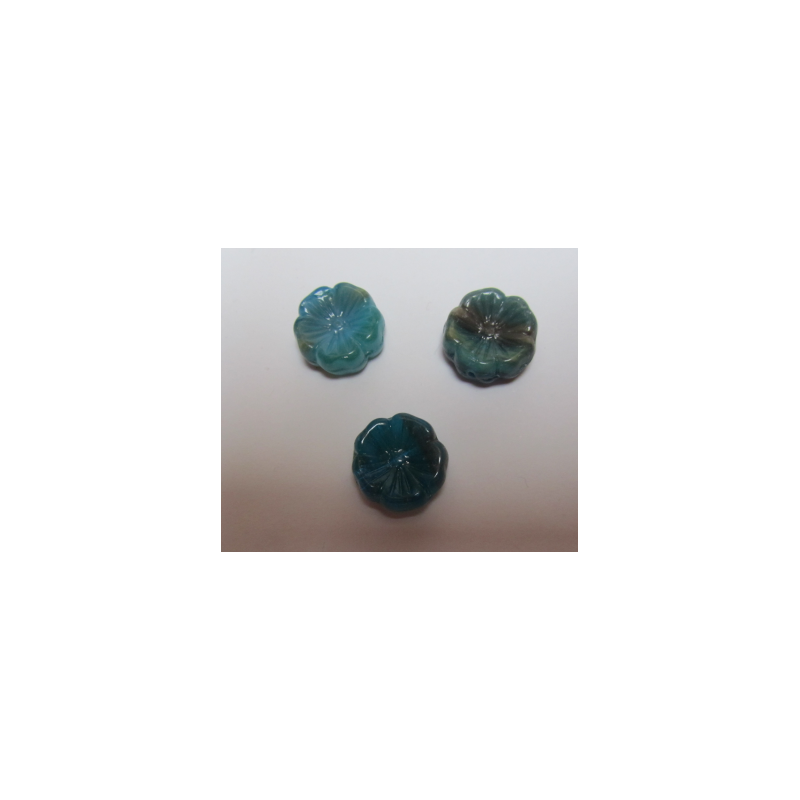Perle forma Fiore 14 mm Verde/Blue/Beige Variegato - 5 pz