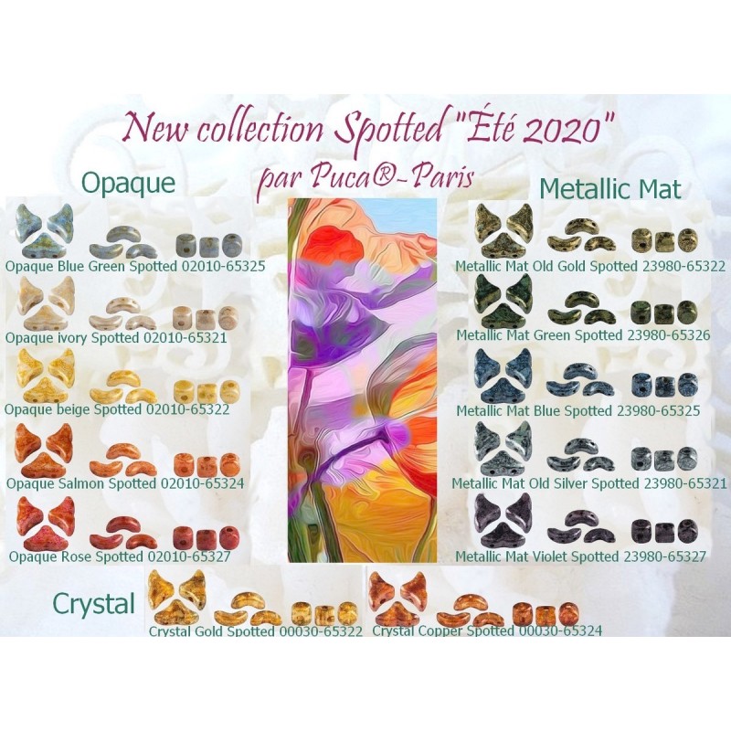6 stupendi schemi omaggio per i nuovi colori Spotted: bracciale For You, pendenti Salomé e Frou Frou, parure Anne, collana Imani ed orecchini Aliona (vedi foto). Li trovate, insieme a tutti gli schemi offerti da Puca®, cliccando quì (potete cercarli in ordine alfabetico o in base alle perline utilizzate)