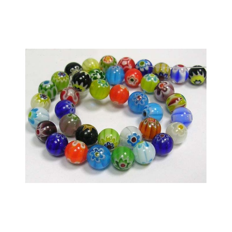 Perle Tonde Millefiori in Vetro 8 mm Colori Misti - 10 pz