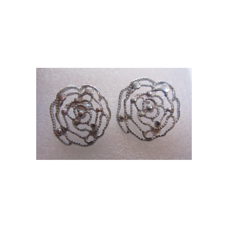 Perno in Zama Rosa Grande Stilizzata Traforata 25 mm Color Argento - 2 pz
