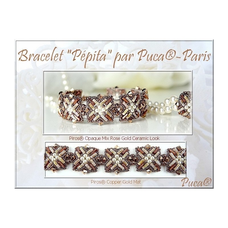 A chi acquista almeno una bustina di Piros Puca offre ben 8 schemi in omaggio (che verranno inviati per email): anello Pam, bracciali Prisca e Pepita, perla Pepita, collane Prisca, Pacome e Patty e pendente Pilar (vedi foto)
