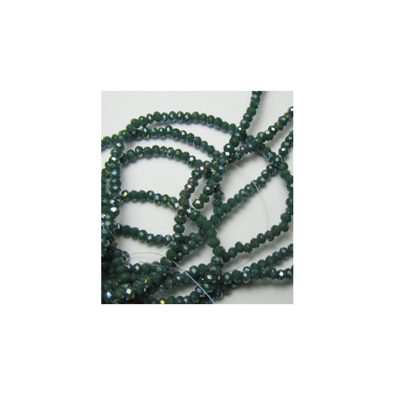 Rondelle Sfaccettate in Vetro 3 x 2 mm Dark Sea Green AB - 1 Filo da circa 41 cm