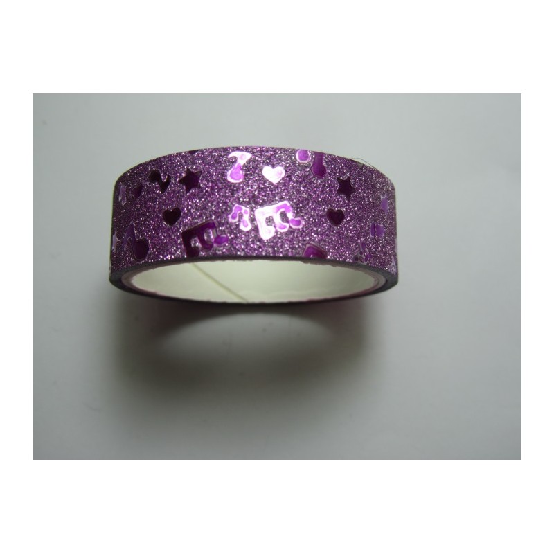 Stickers Adesivi con Glitters 14,5 mm Note, Cuori e Stelle Fucsia - 1 Rotolo da circa 3 m