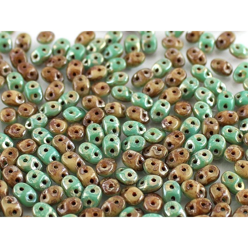 Superduo Duet® 2,5x5 mm Green Turquoise Ivory Picasso - 10 g